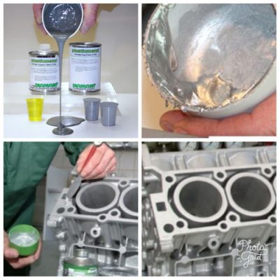 Unsurpassed quick repair for all metals -2 component metal poly mers, no fixed mix ratio, liquid or pastey cures in 30 mins., looks liks the parent metals because of the fine filler portions to 98% – heat resistant to +250º c/466º F- available for all metal grades incl. Aluminum, Iron, brass, bronze, cop-per, red brass and ceramics