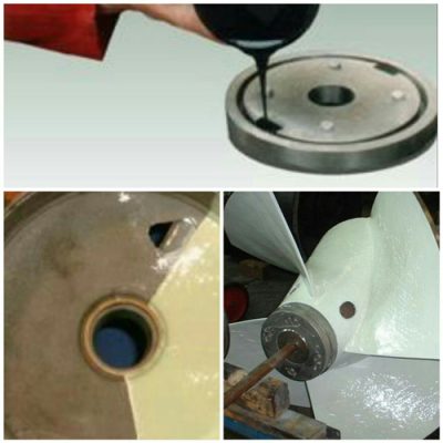 Two-component polymers for repairing and filling cracks, gaps, and clearances between flanges, joints, and similar interfaces.